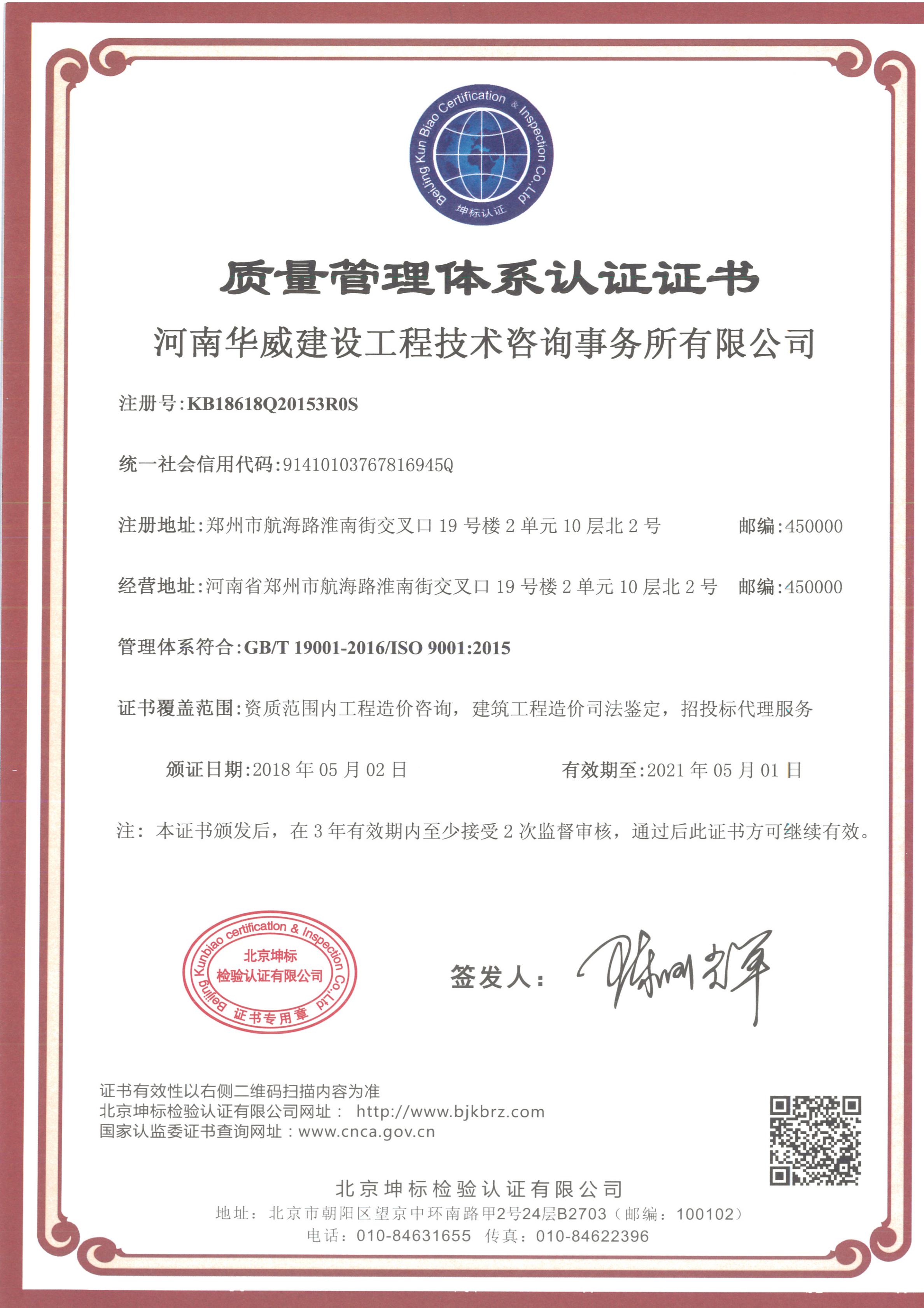 管理管理體系認證證書